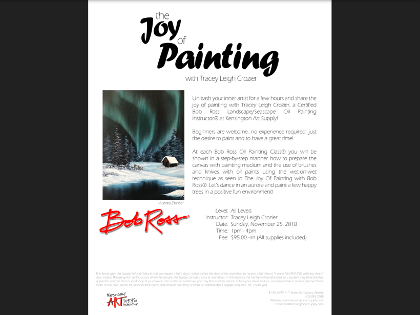 Upcoming Public Art Class at Kensington Art Supply November 5, 2018 TraceyLeighCrozier Share this: Click to email a link to a friend (Opens in new window) Email Like Loading...