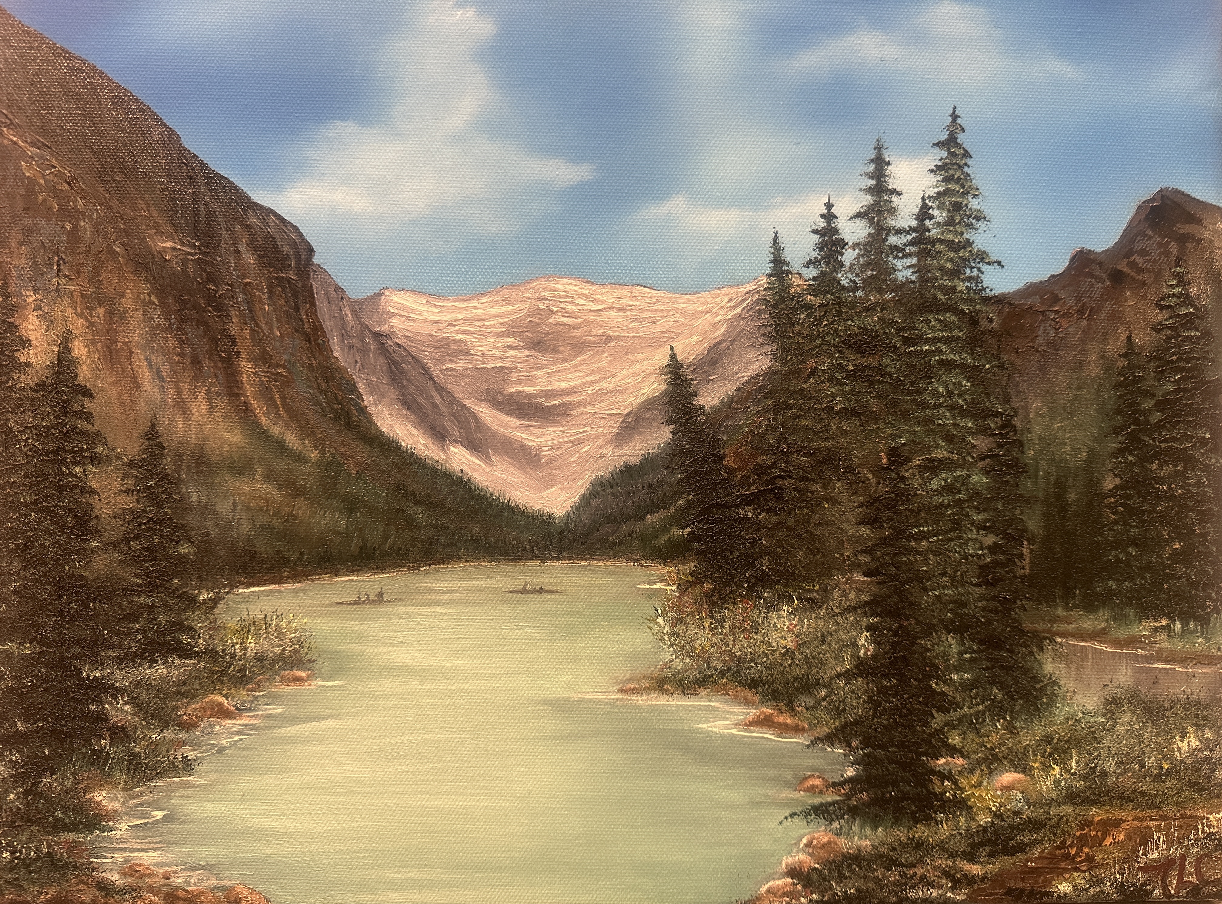 $185 USD Buy Now : https://paintwithtlc.thrivecart.com/a-mountain-lake-adventure-awaits-12×16/